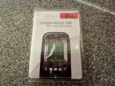 画面だけでなく、全面を覆う液晶保護シートが欲しかったのですが、残念ながらこれは画面のみの保護シートです。しかしながら、Palm Pre専用の保護シートを国内で買うのは難しく、1パッケージに3枚入って値段が9ドル99セント。これなら買っておいても良いかなと思い、買ってみました。