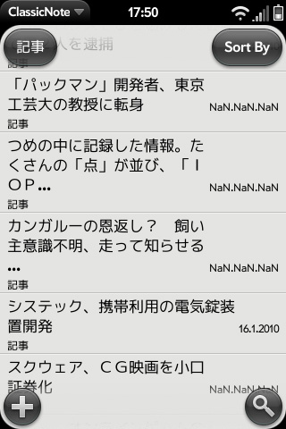 Palm PreのPrewareで、ClassicNoteというアプリを見つけました。ClassicといってもClassic環境ではなく、webOSのアプリです。海外の記事を見ていたら、旧PalmOS機のデータを移行できるみたいなので早速やってみました。
