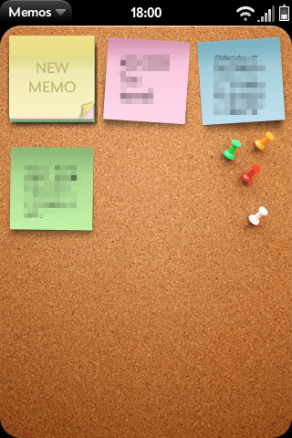 Palm Preには標準でMemosというアプリが入っています。ボードに自分の書いたメモが貼り付いているビジュアル。なかなか綺麗です。しかしながら、メモアプリにビジュアル的な遊びは要らないという方も多いのではないでしょうか?