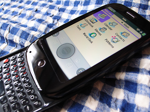 まず、持ったときに感じたのは「軽い」でした。Palm Preが小さい割りに重量感あるのに対して、Palm Pixiは軽く感じました。帰ってきてから重量を調べたのですが、Palm Preが135g、Palm Pixiは99.5gです。元々の重さがこの程度なので35gの差は結構な差です。