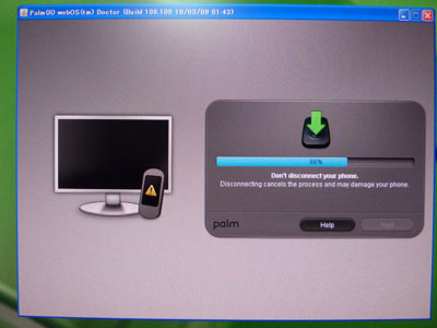Palm PreをUSBでつなぎ、電源を入れると出る画面です。