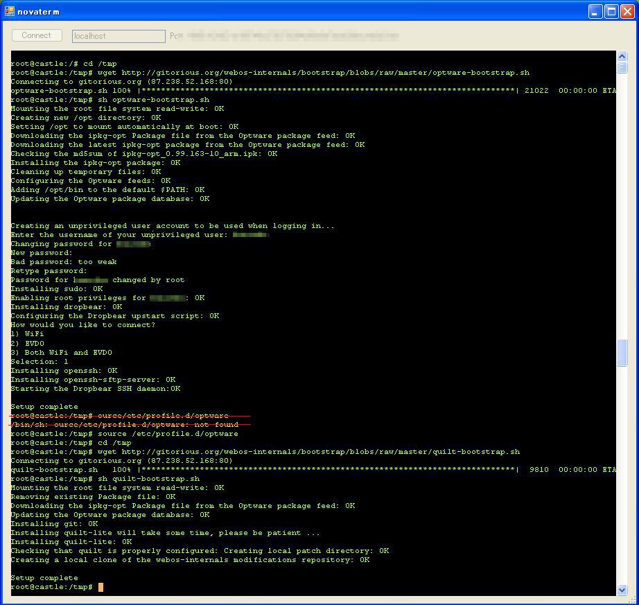 さらに手順通りに進めていったら、Palm PreにSSHサーバなるものがインストールされたようです。