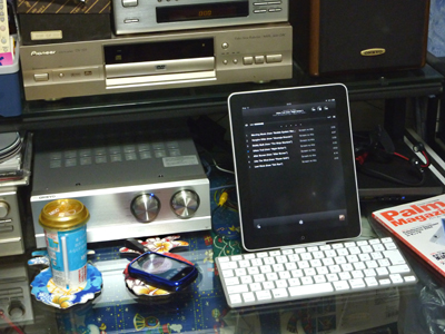 このiPad Keyboard Dockは充電及び文字入力ができるだけではなく、裏側にはオーディオの出力端子があります。そこで、部屋にあるONKYOのアンプにも接続しました。結果は大満足。まるでiPadがオーディオのコントロールステーションのようになりました。iPadで選択した音楽がジャケット表示で(もしくはリスト表示で)ステレオコンポから再生されます。Youtubeも快適です。リモコンが無いのが難点ですが・・・。