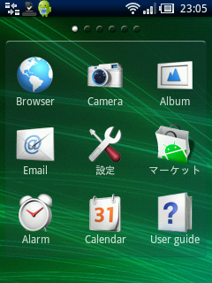 電池を入れて初起動。少し動かした後に日本語化だけやってみようと、画面からマーケットアプリを探しましたがありません。ネットでみつけた他の方のスクリーンショットによると「設定」の右位置にアイコンがあるハズなのですが、その部分に僕のmini Proは「Peggle」というアイコンが表示されています。立ち上げてみるとゲームみたいです。面白そうなゲームなのですが、喜んで遊ぶ気もおきません。うむー。
