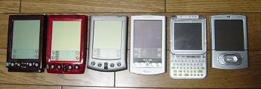 左からPalm Pilot Pro,WorkPad 31J,Palm Vx,CLIE PEG-750C